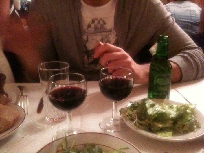 Marais’de gezerken karnımız da acıkınca kazık yerine güzel bir şeyler yiyelim dedik ve yoldan geçen iki Fransız kızdan bize bir cafe önermelerini istedik. Yüz kişiye sorduk, en popüler cevap olan Les Philosophes’de günün menüsü çok hesaplı, garsonlar çok sempatik ve yardımcıydı. Klasik bir Parizyen Cafe, salatalar da şahane.